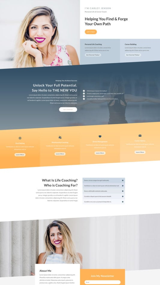 • Универсален шаблон, който е подходящ за бизнес Лайф Коуч или подобен тип дейности.